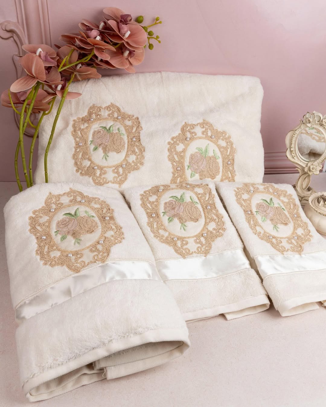 Elegant hand embellishment adds a sophisticated accent to everyday essentials.